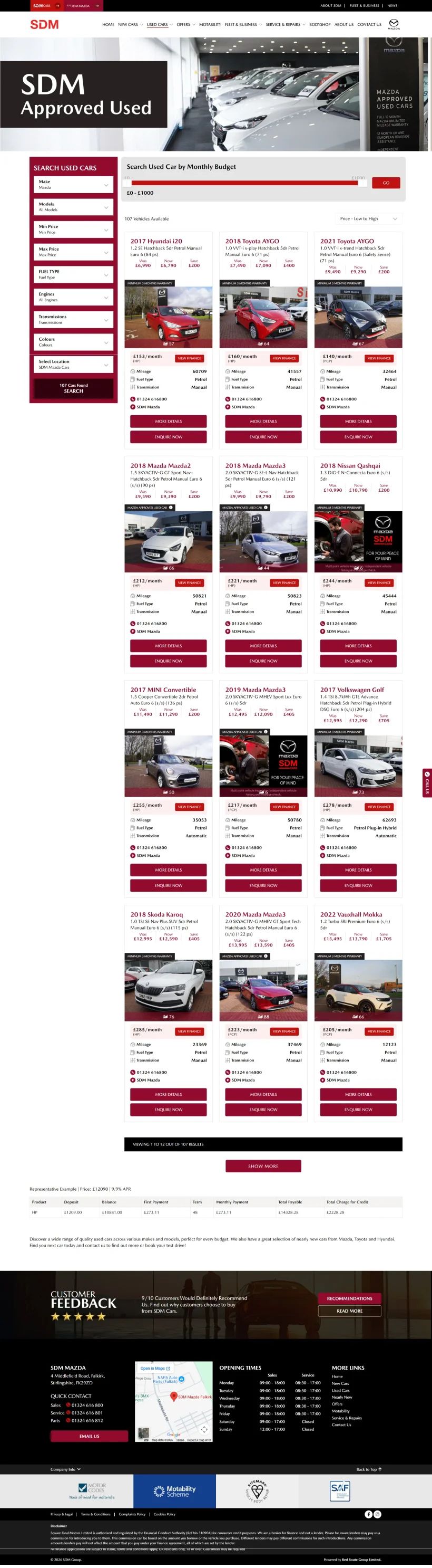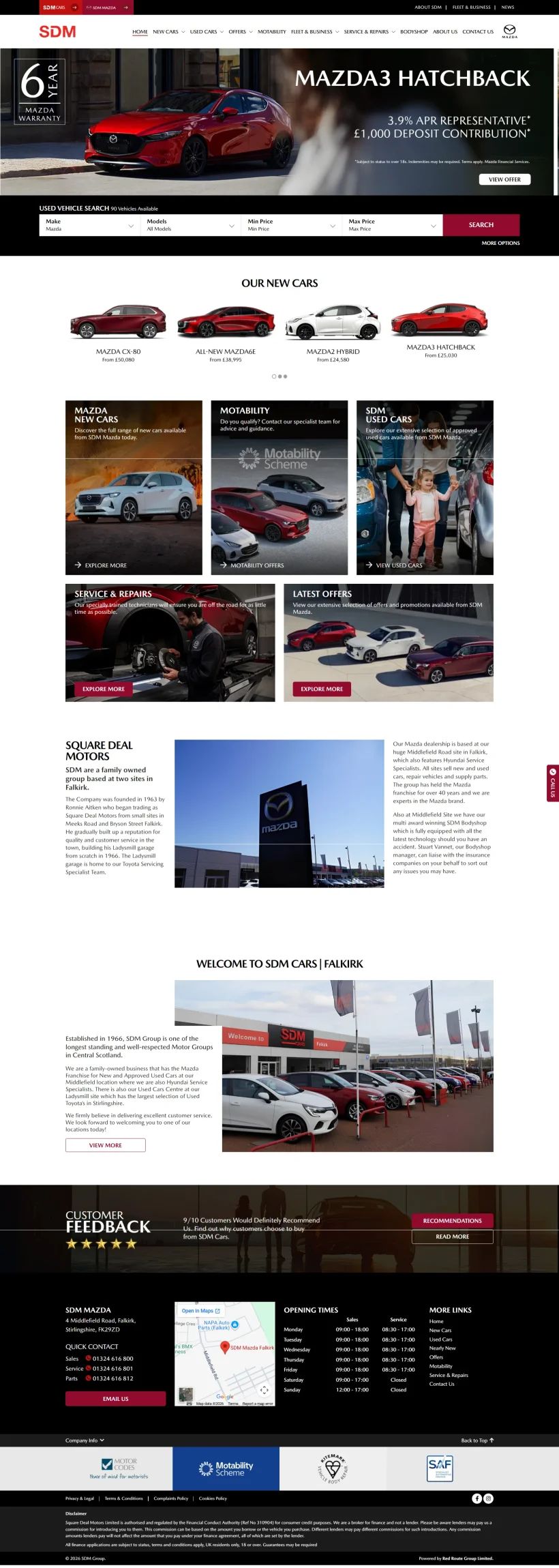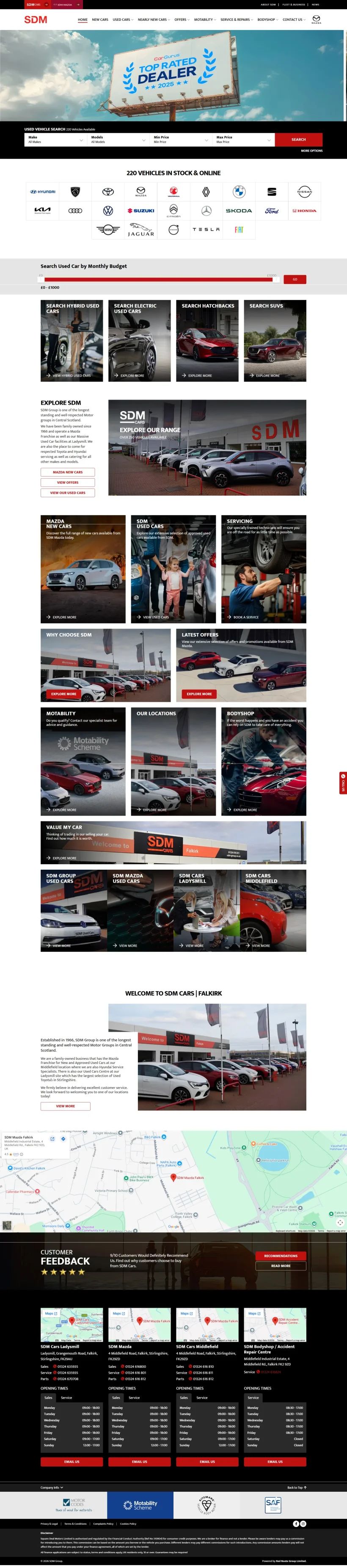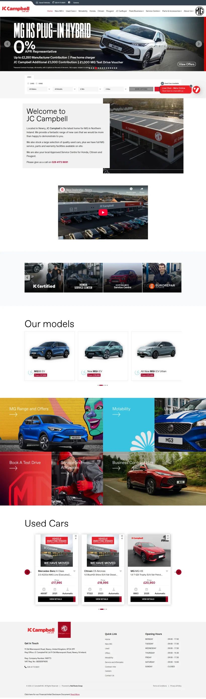 The website presents their vehicle range, special offers, and dealership services in a clear and organized layout, making it effortless for customers to browse and enquire.