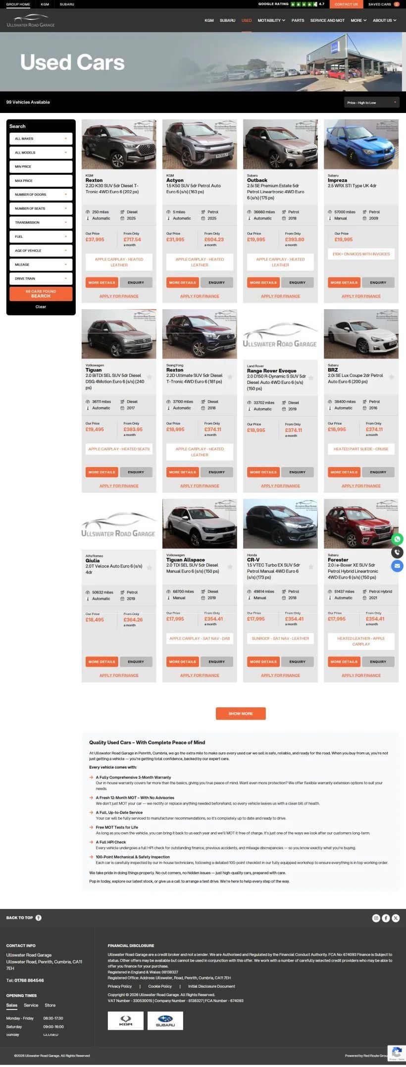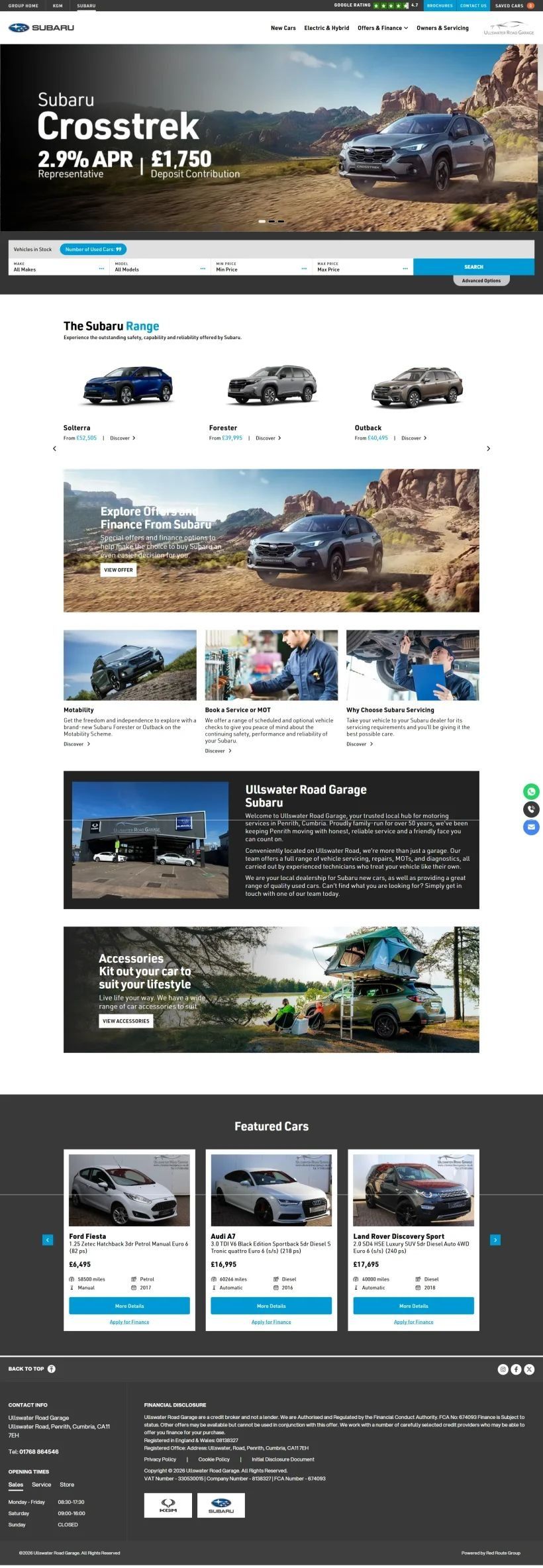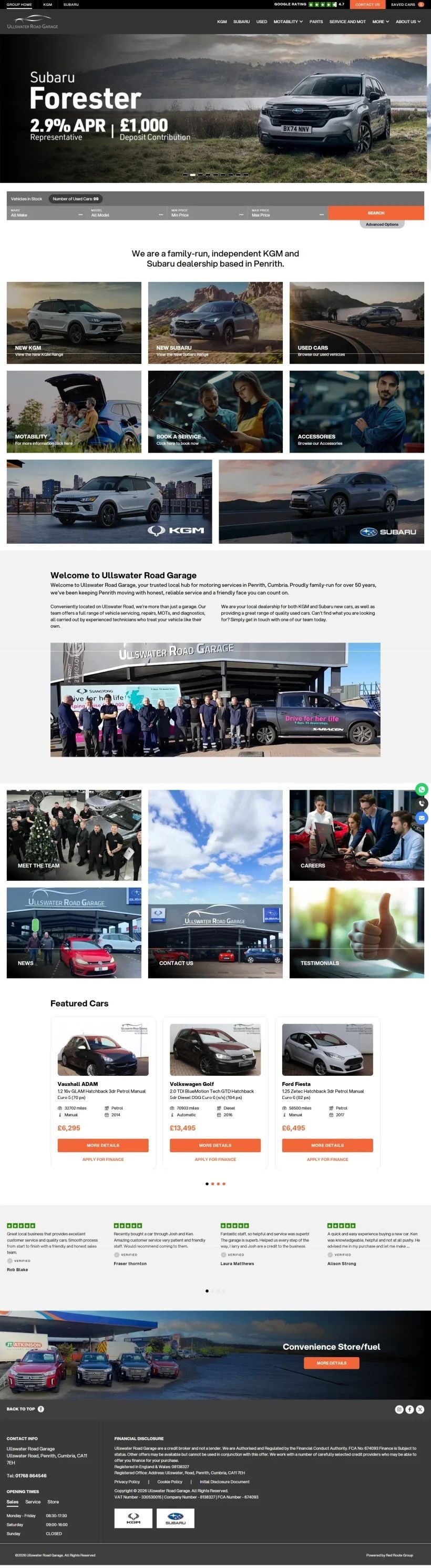 The website showcases their vehicle range, services, and special offers in a clear and engaging format, allowing customers to browse with ease.